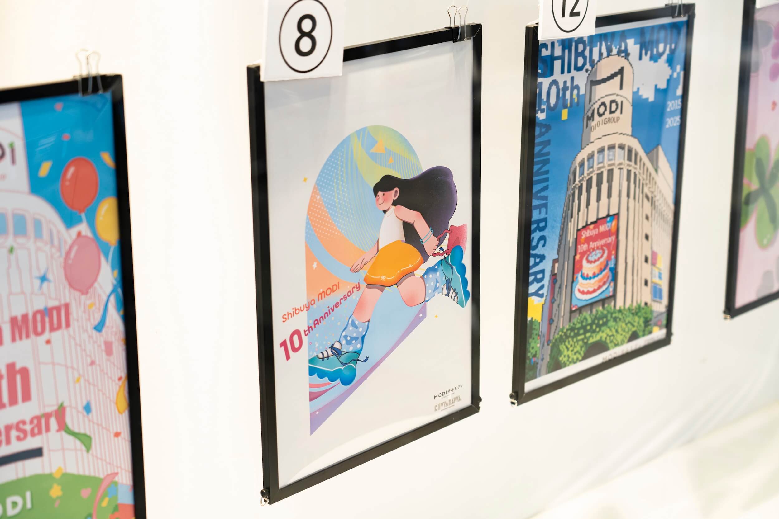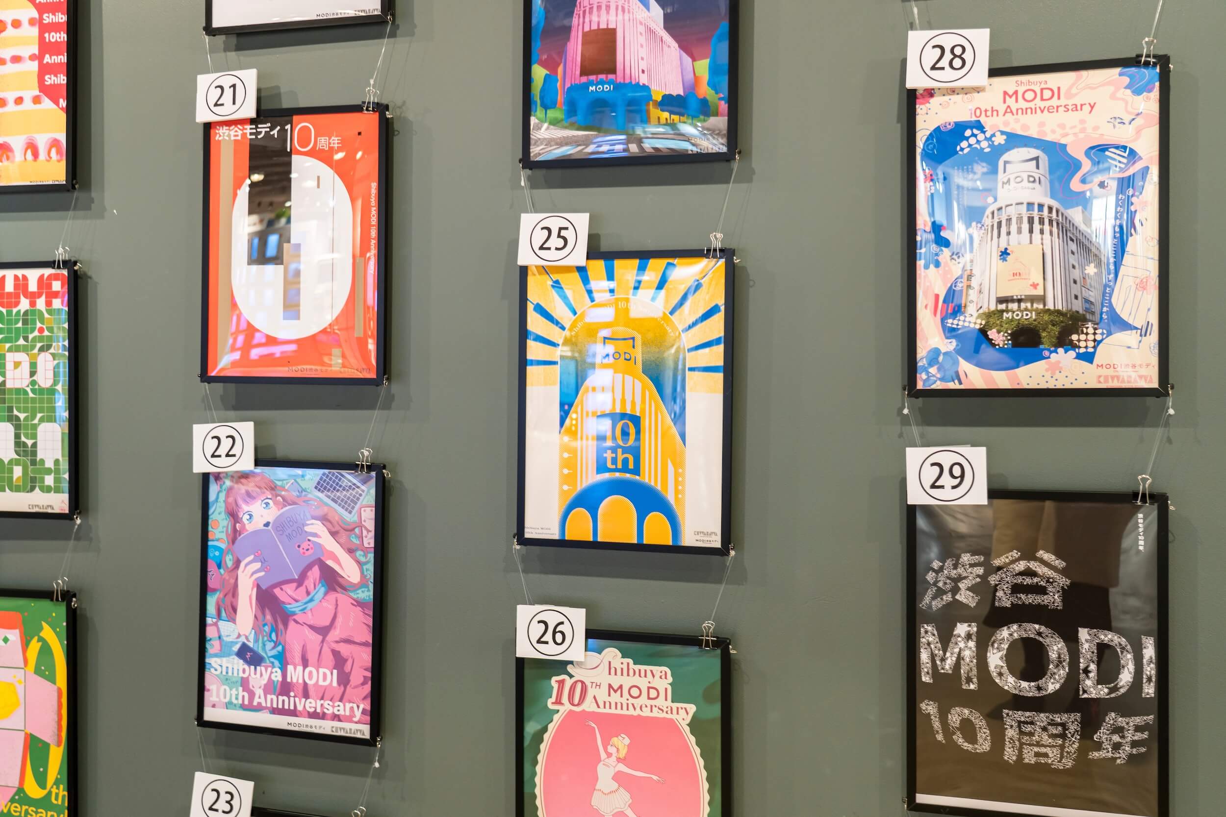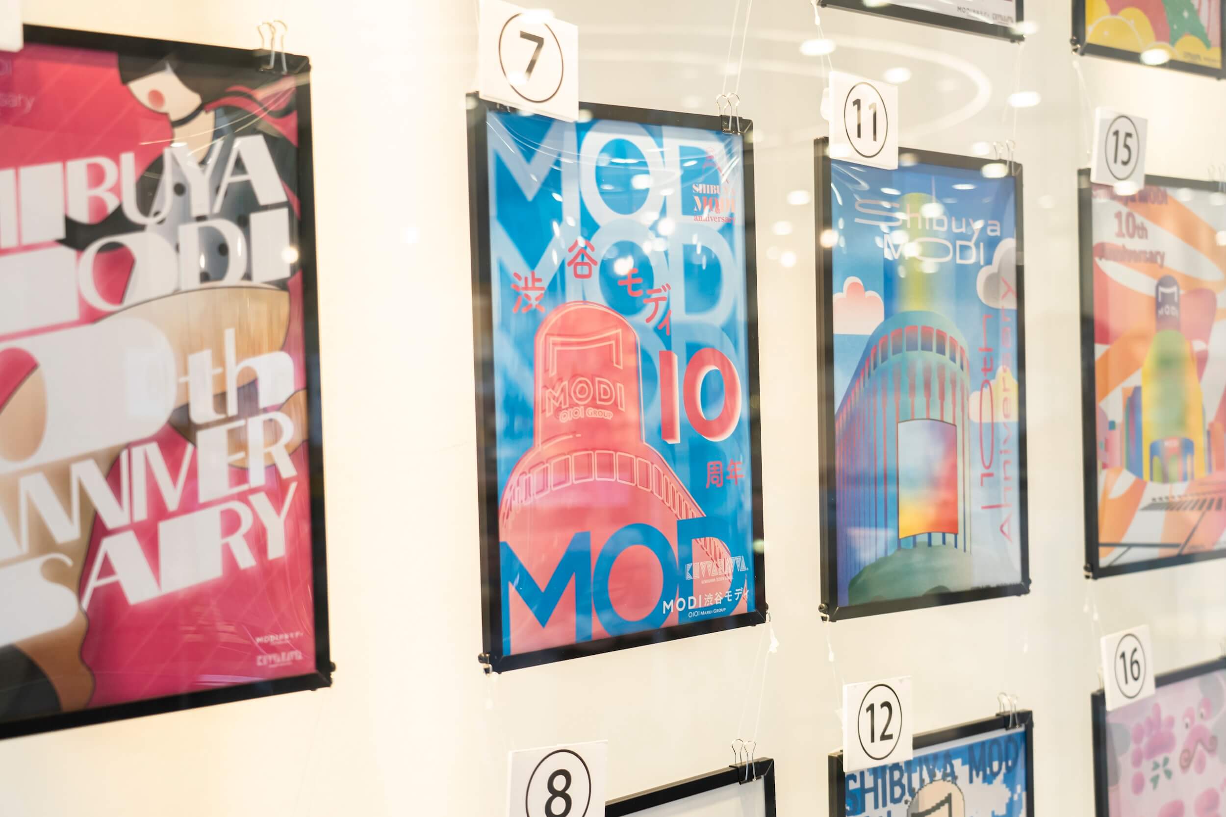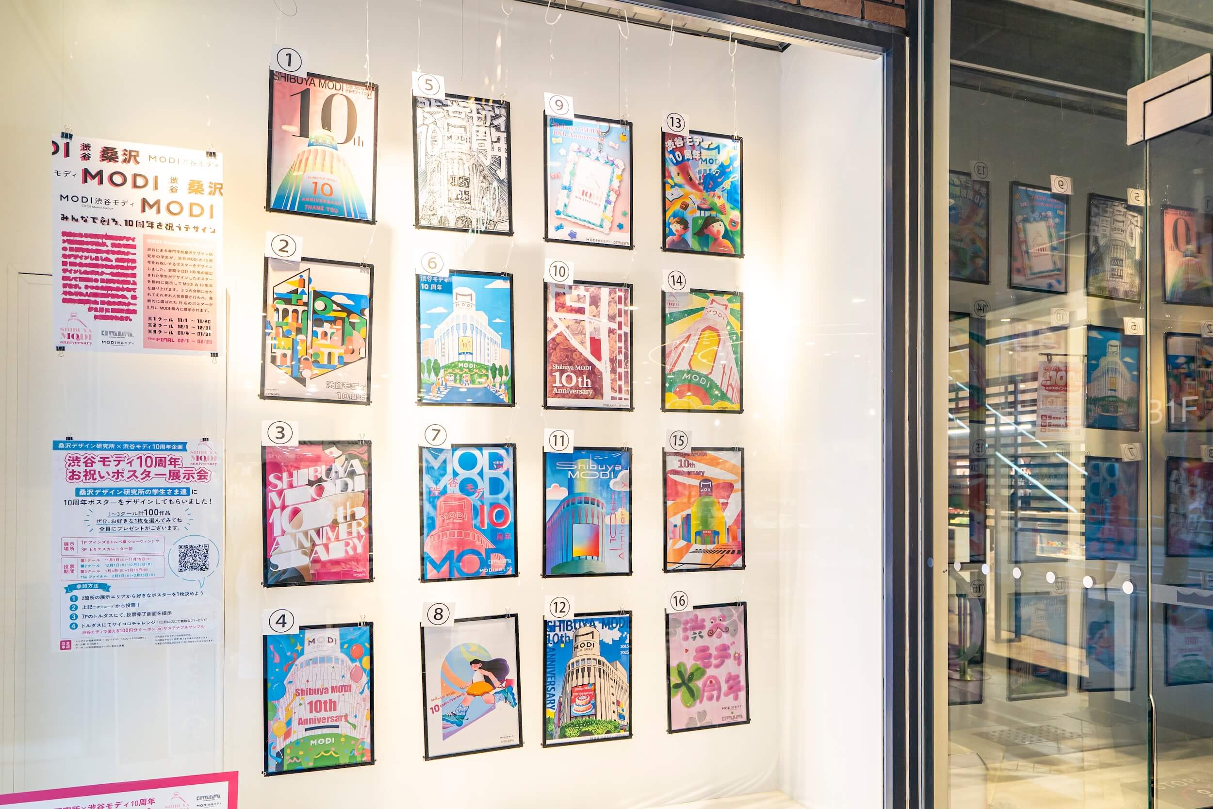 渋谷モディ10周年を記念して、昼間部ビジュアルデザイン専攻2年生と3年生が課題としてポスター制作に取り組みました。