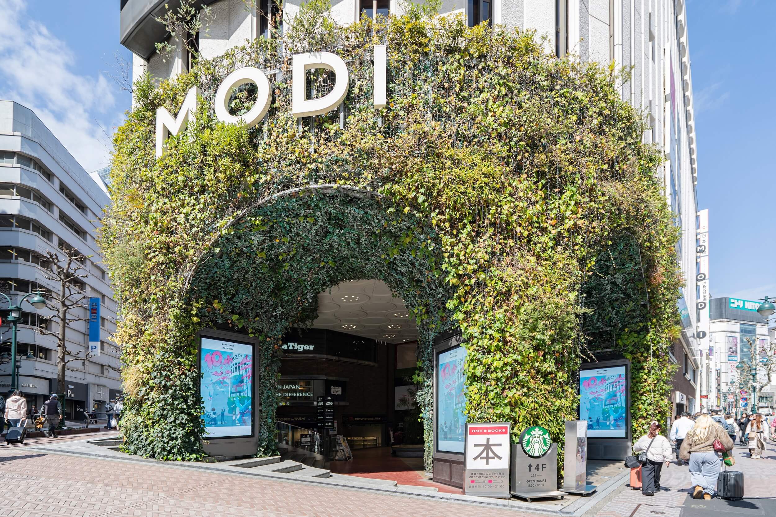 渋谷モディ10周年を記念したコラボ企画として、ビジュアルデザイン専攻の学生による100作品を館内に展示するプロジェクトを行いました。