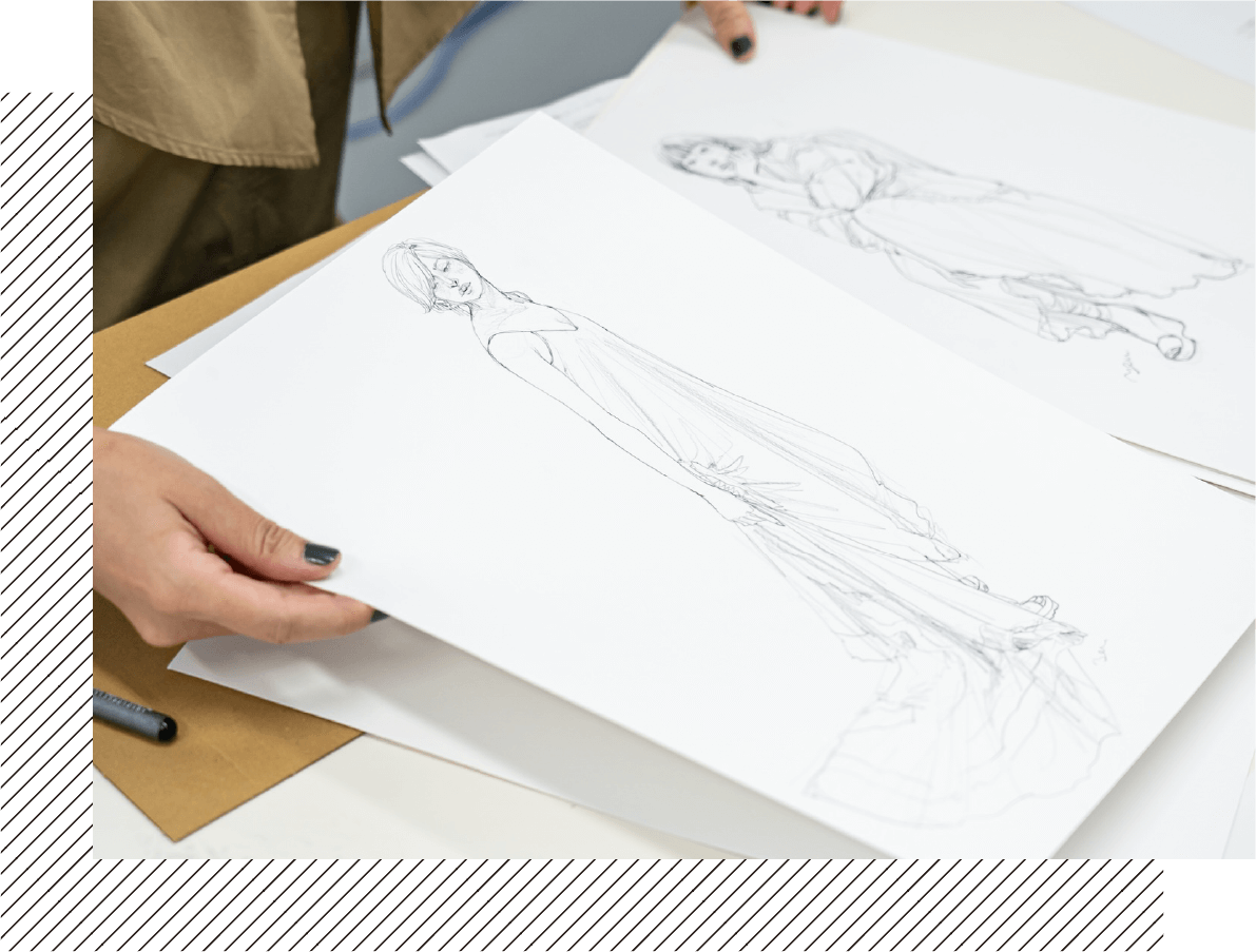 オリジナルのデザイン画を制作し、自分の感性を形にするプロセスを体験します。
