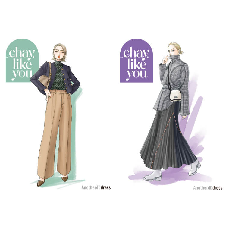 住田葉子:桑沢デザイン研究所の昼間部卒業後、アパレル企画会社でコレクションやトレンドを分析し市場向けのデザイン画を描く仕事を担当。現在はフリーランスのファッションイラストレーターとして活動しつつ、株式会社ROOM810に所属。