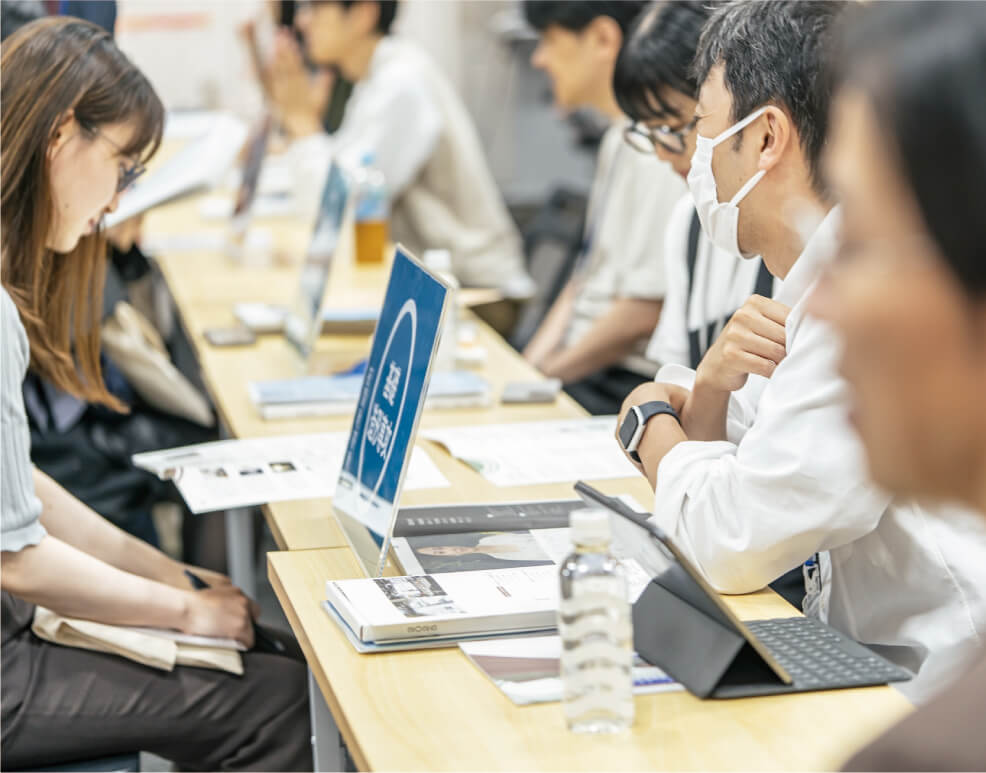 前半のレクチャーでは原理や背景について学ぶ場面を、後半のワークショップでは実際に体験しながら取り組む様子をご覧いただけます。授業見学お申込み