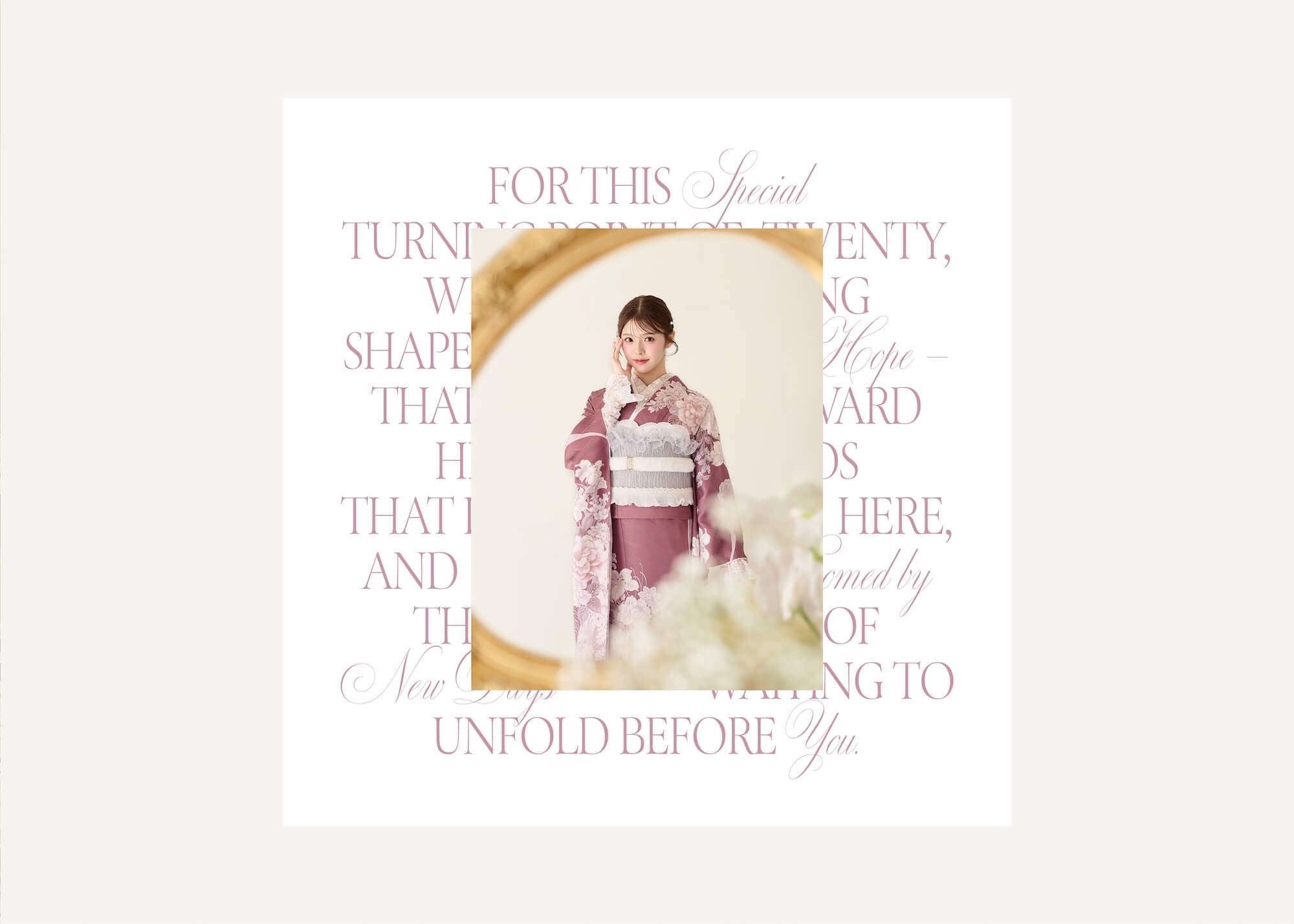 二十歳という特別な節目に寄り添い、手紙を受け取る・書くといったストーリー性や、作り込まれたセット・プロップス、ヘッドドレスの選定によって新しさがありながらも品のある、洗練された可愛らしさを目指しました。