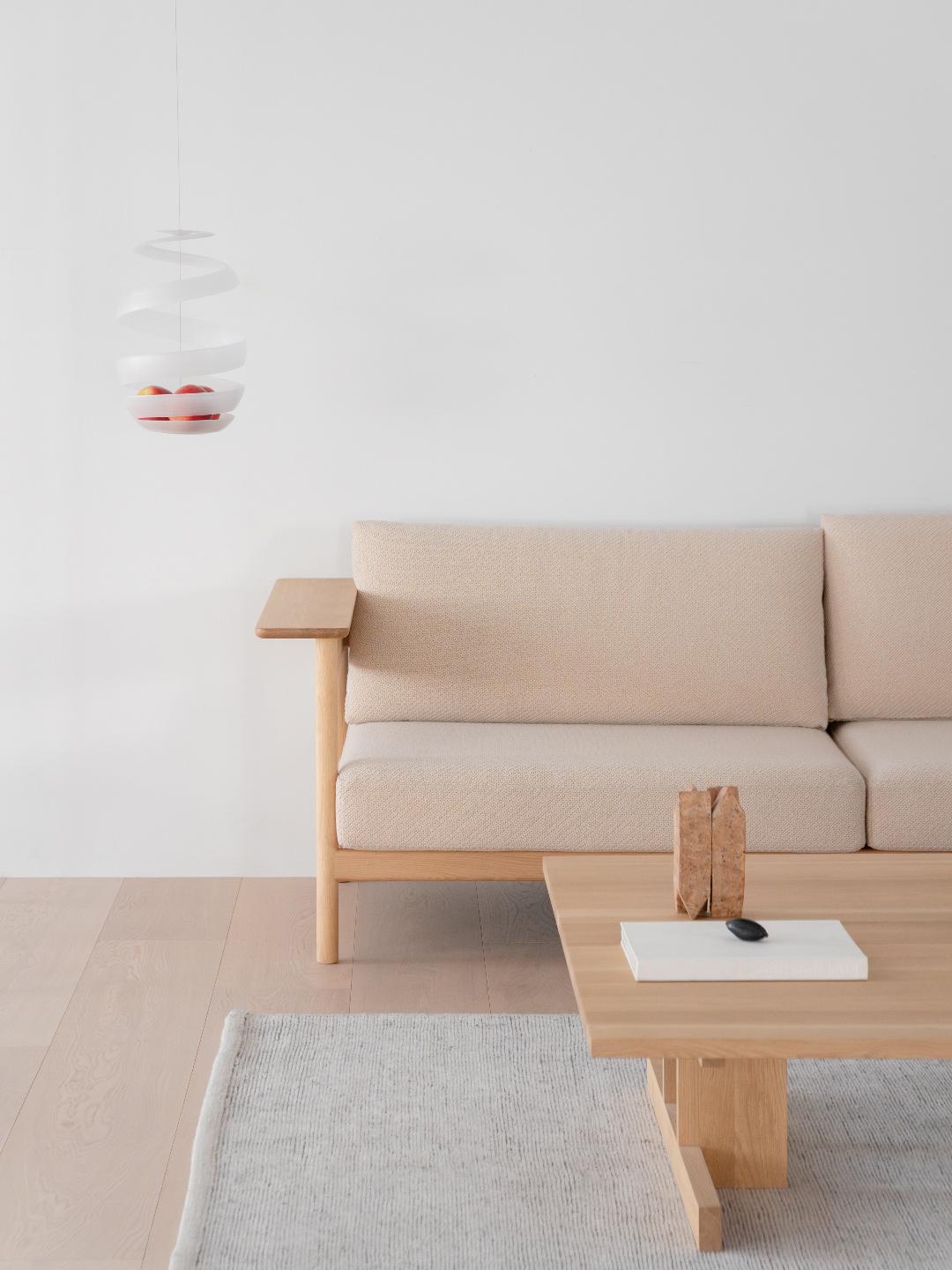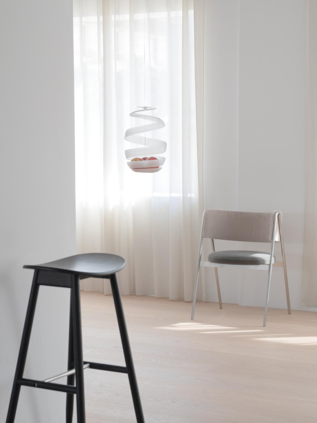“mela”は、吊り下げることで果実を空中に浮かせるように飾ることができ、居住空間において果実を独立した存在として際立たせます。