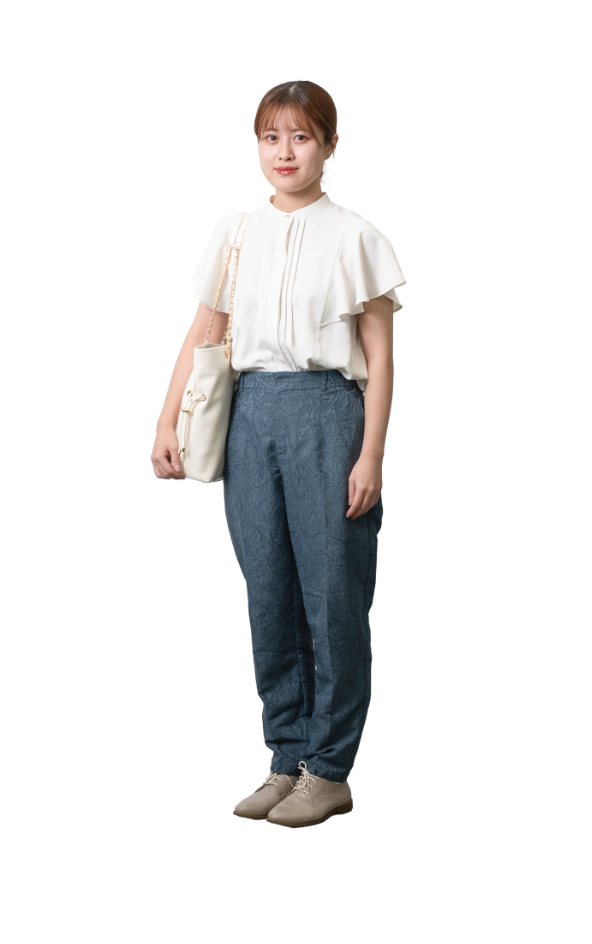 私服参加の指定があったため、オフィスカジュアルで参加しました。スーツとは異なる明るい服装を選び、白と青を基調に爽やかさを意識しました。