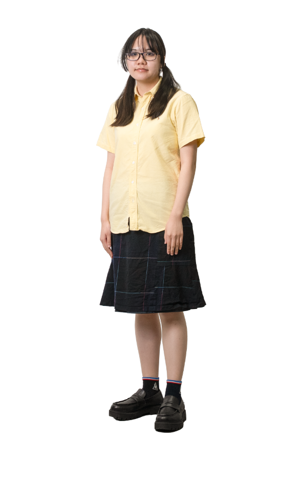 面接当日は「普段着でお越しください」と指定がありましたが、清潔感と落ち着きを意識しました。明るい黄色のシャツに紺の膝丈スカートを合わせ、足元はローファーで統一。自分らしさを残しつつも、誠実で好印象を与えられる装いを心がけました。