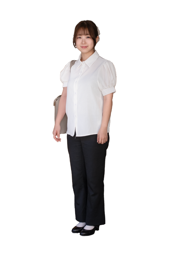 面接では企業から私服指定があり、HPなどから柔らかい社風だと感じました。清潔感を意識しつつ、黒のリボン付きパフスリーブブラウスを選び、きちんと感と自分らしさの両方を表現できるよう心がけました。