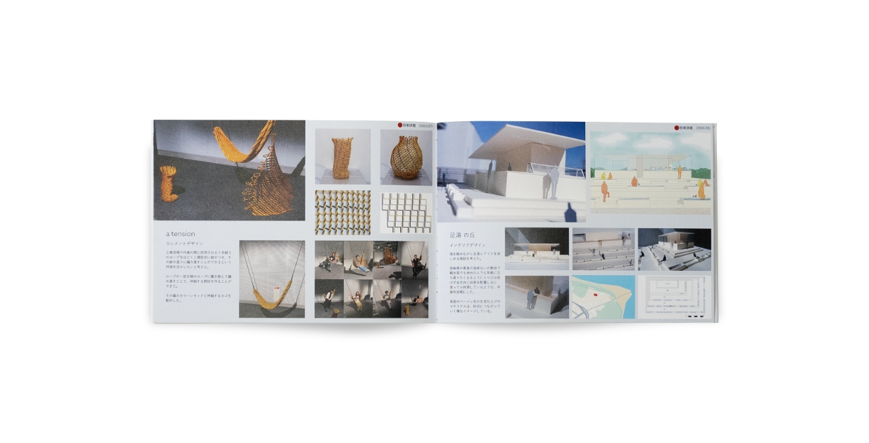 建築設計課題を中心に、平面・立体・グラフィック表現まで幅広くまとめた作品。