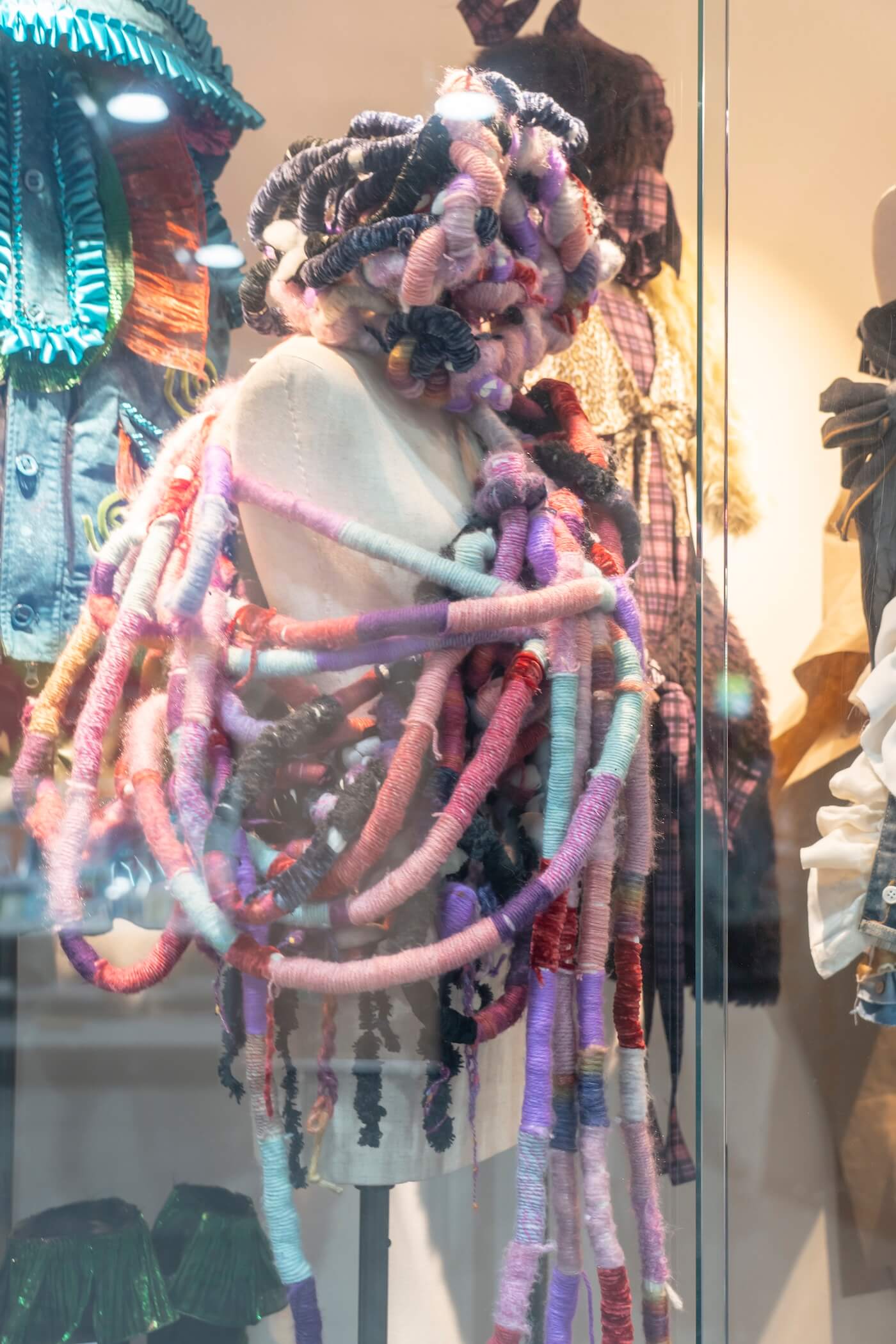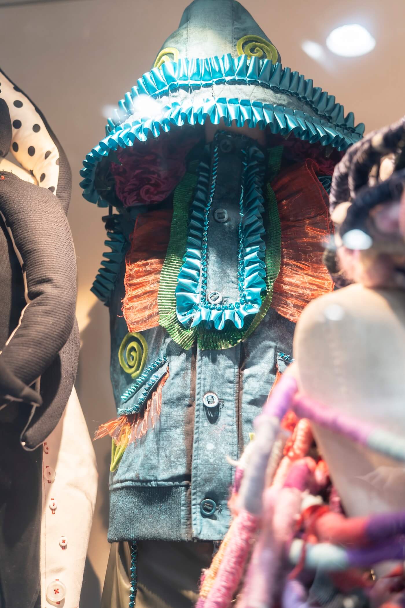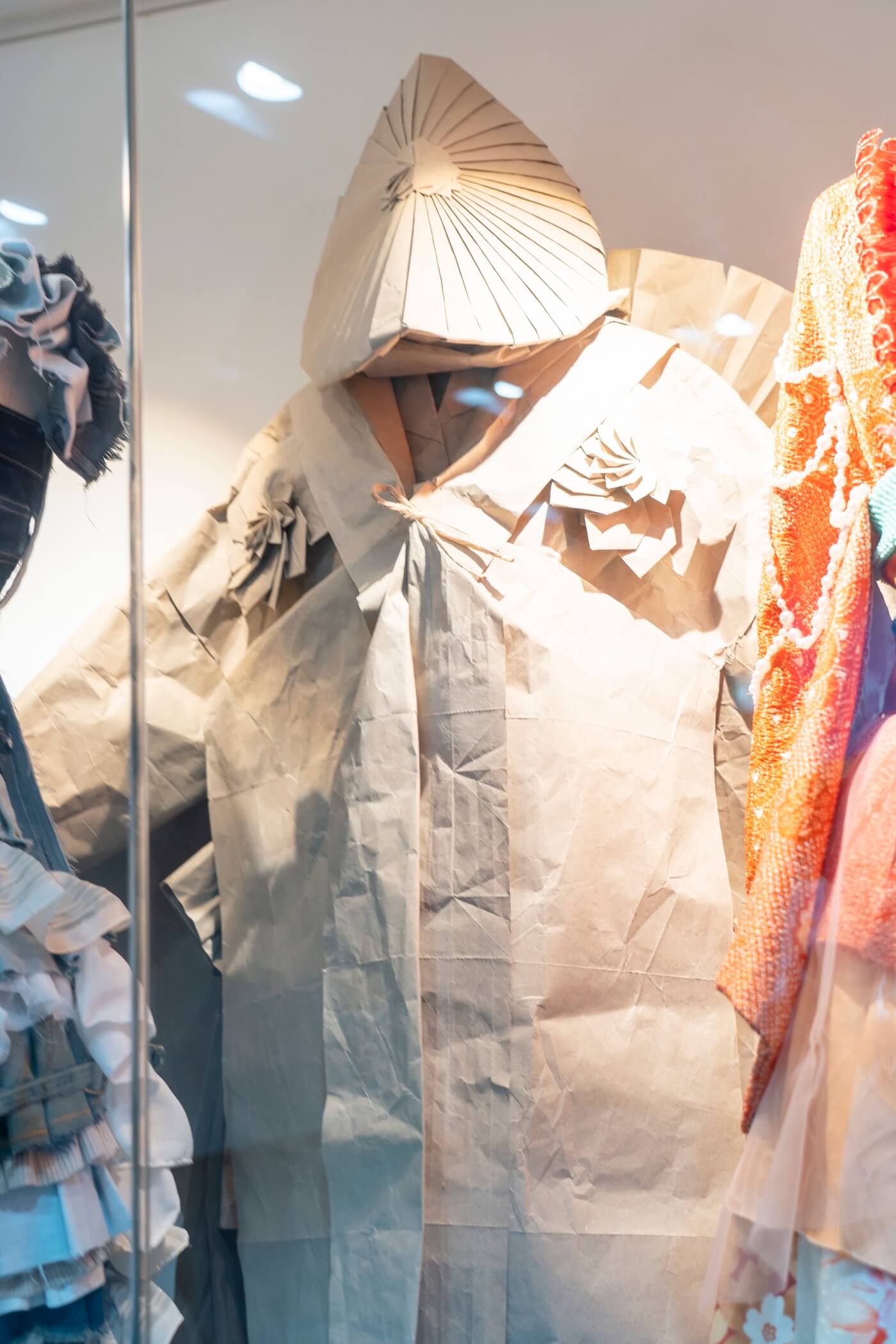 課題は 「頭をおおう」「身体をつつむ」 という条件をもとに、学生自身がテーマを設定し、立体作品として表現することです。