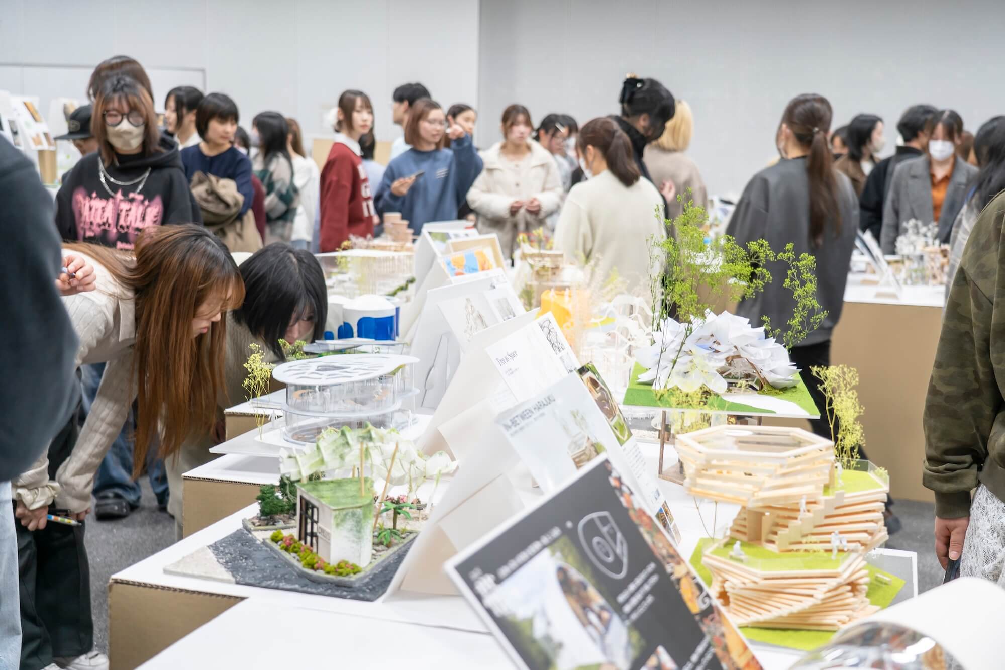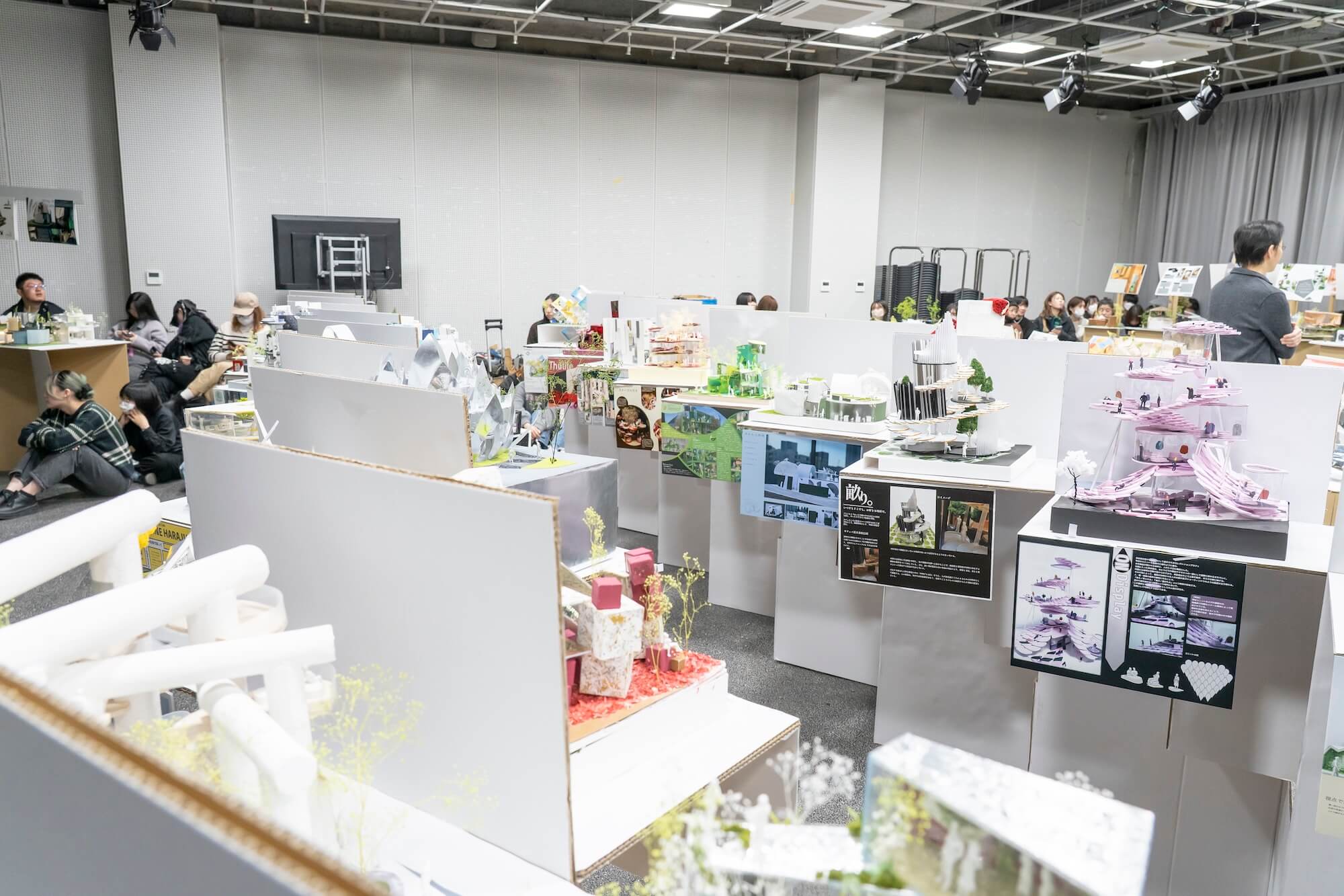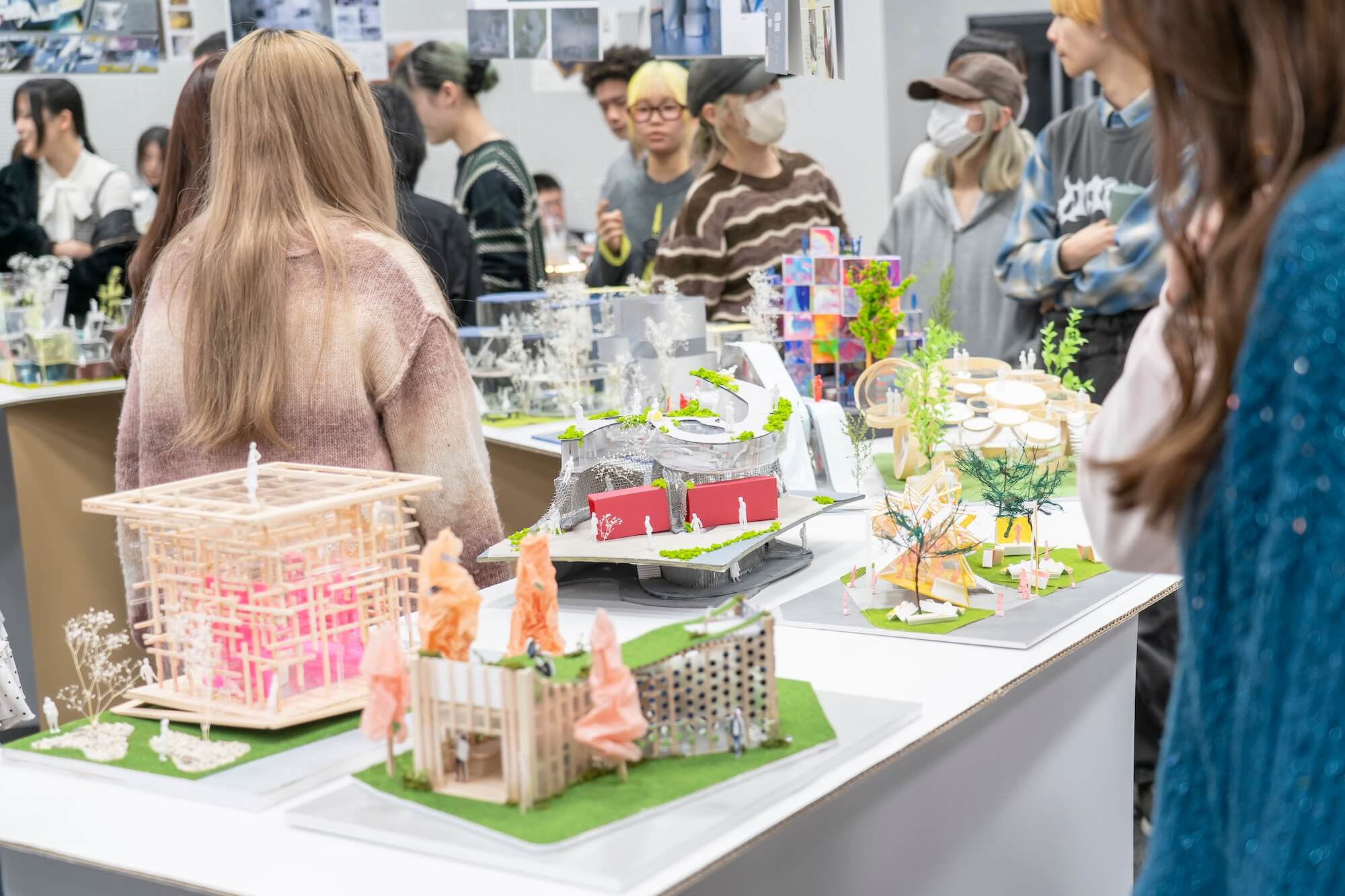 展示台のデザインにはクラスごとの個性が表れており、原寸大で制作・展示したことで、什器としての使い勝手だけでなく、空間全体の使い方についても改善点や新たな気づきがあったようです。